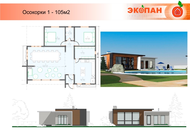 Дом одноэтажный 105м2. Стоимость 1м2 от 155$. Зал, кухня, 2 спальни. Строим "под ключ"!